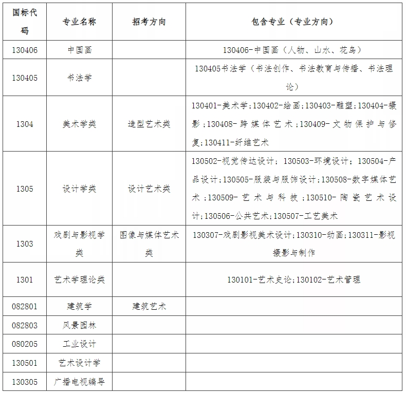 中国美术学院专业教学为基础和专业「两段式」教学模式,各招考专业大类包含专业见下表: