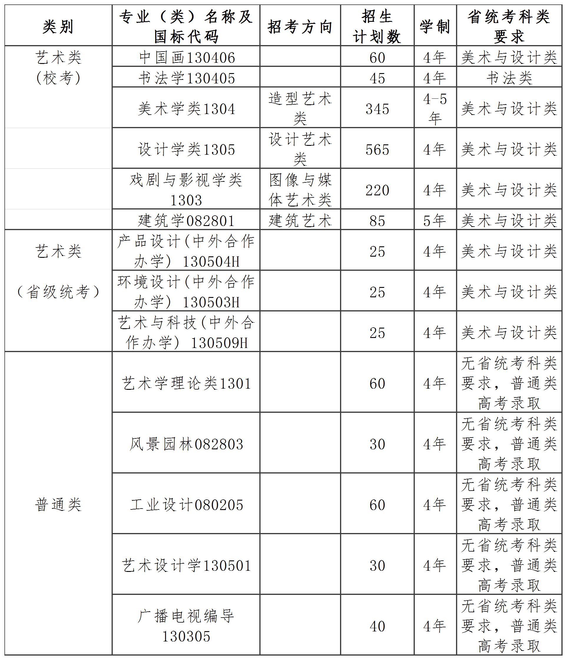 5.艺术类校考、艺术类省级统考招生专业面向各专业对应科类(本科)省级统考合格生源。