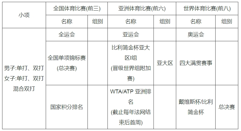 4.网球项目的运动健将,须在以下赛事中取得过对应比赛成绩。