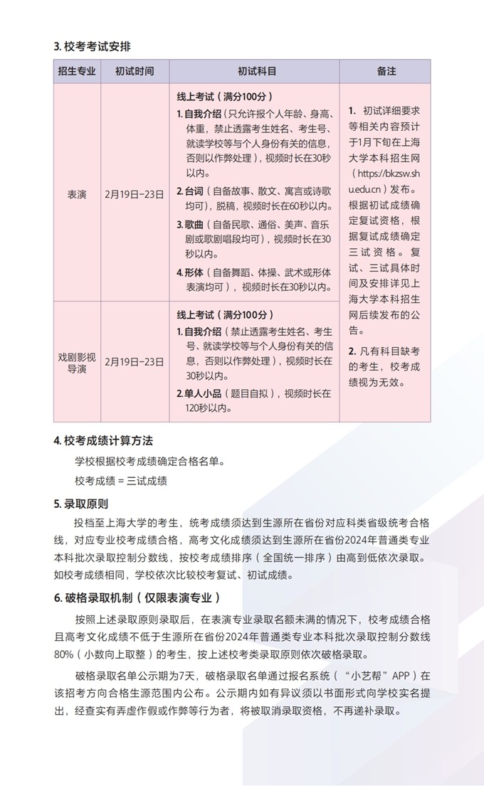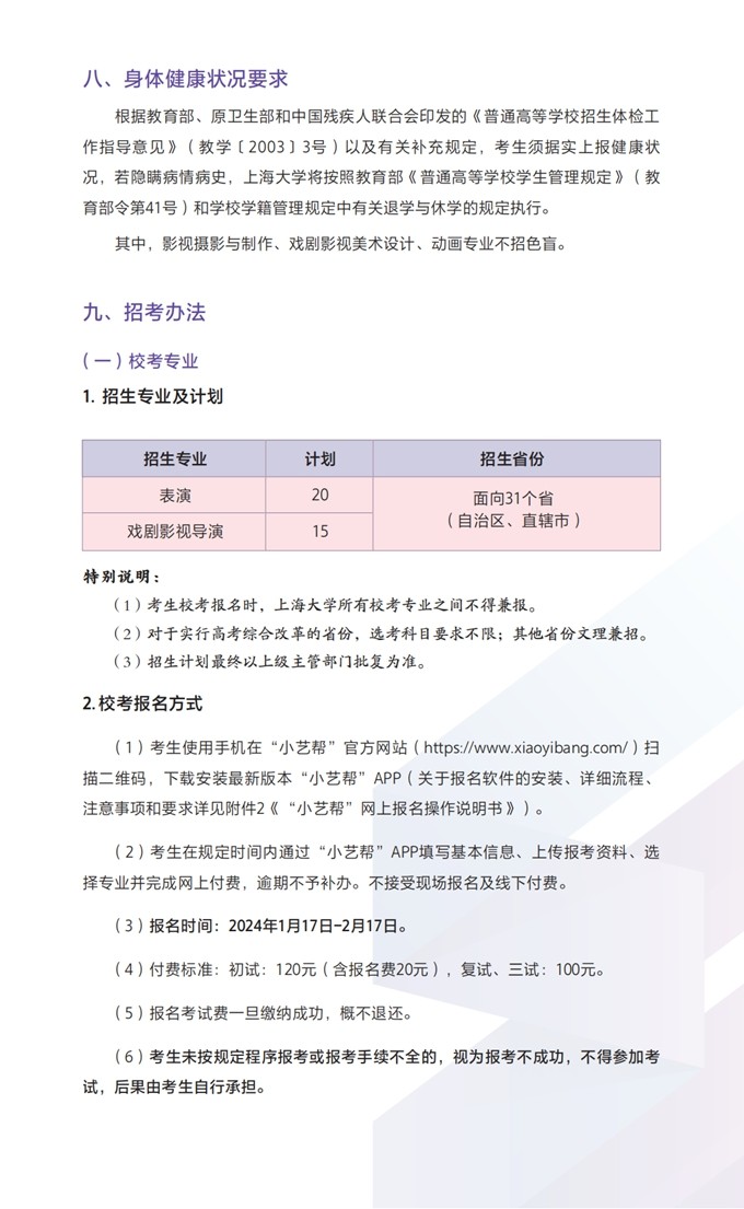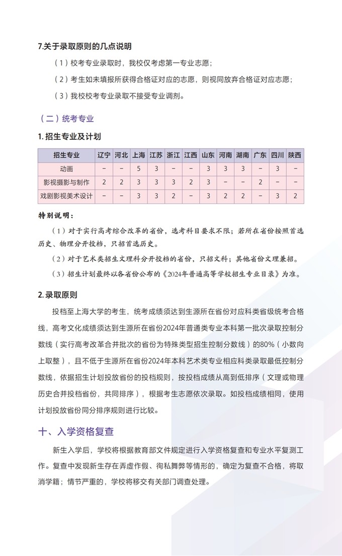 上海大学上海电影学院2024年艺术类本科专业招生简章