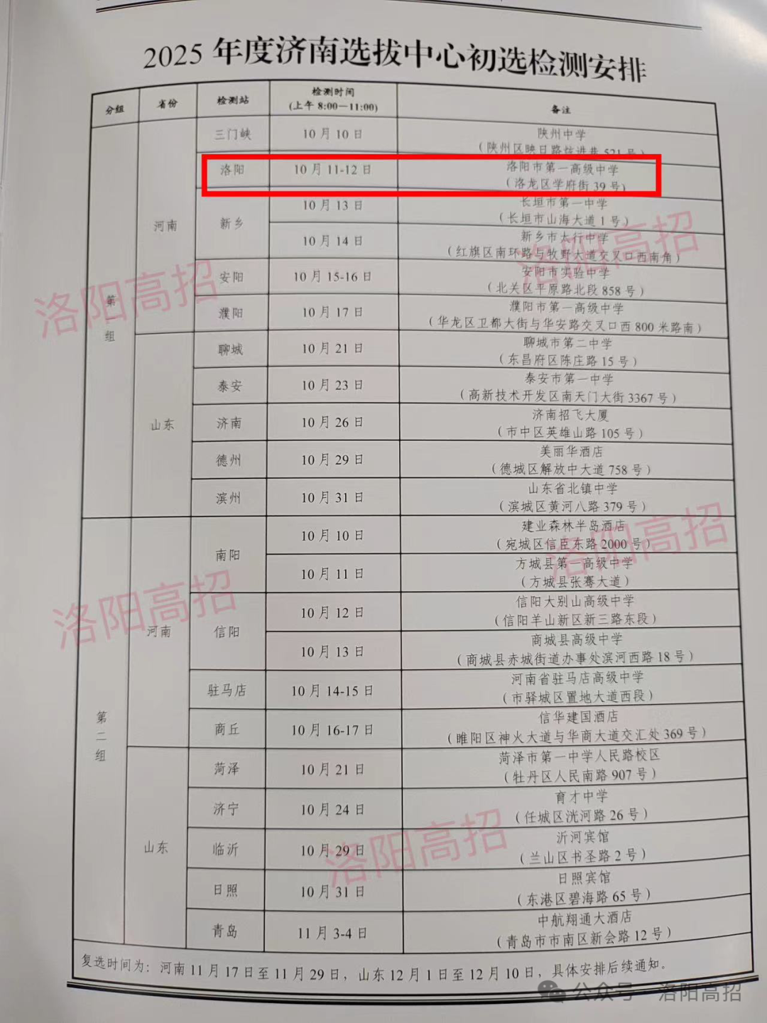 复选:河南考生复选,11月17日至11月29日在济南举行。