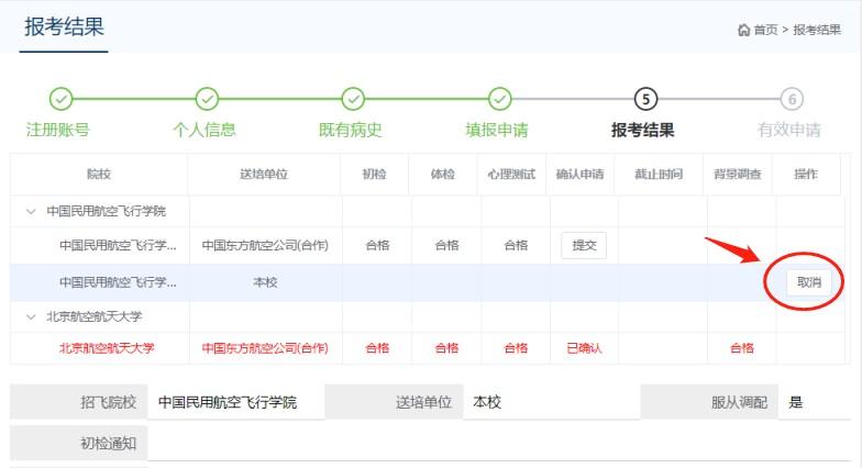 (注释:一旦某申请已经有初检结论,则考生不可再取消该申请)