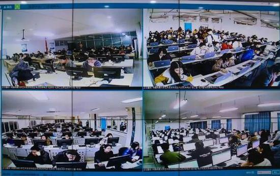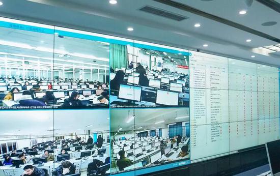 在媒体融合与传播国家重点实验室的大屏幕上,同步显示着各考点的考务信息、考场情况及考试进度等,指挥中心工作人员与各考点随时保持连线沟通,借助现代传播技术手段实现了精准指导。