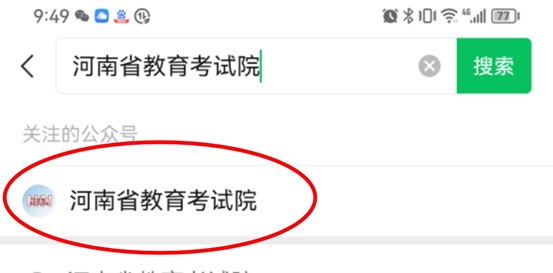 2.微信搜索“河南省教育考试院” 微信公众号并关注。