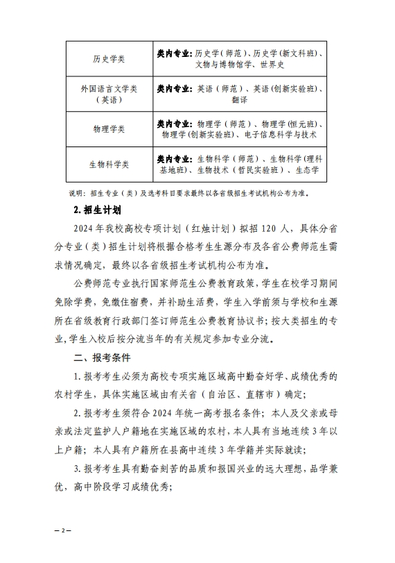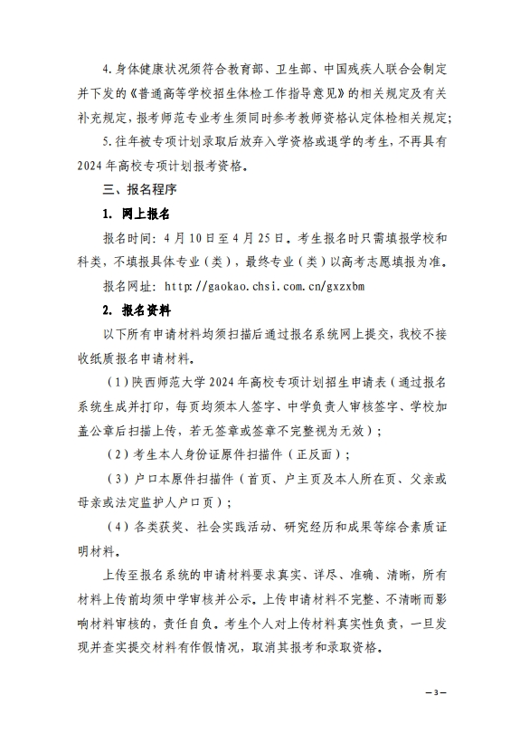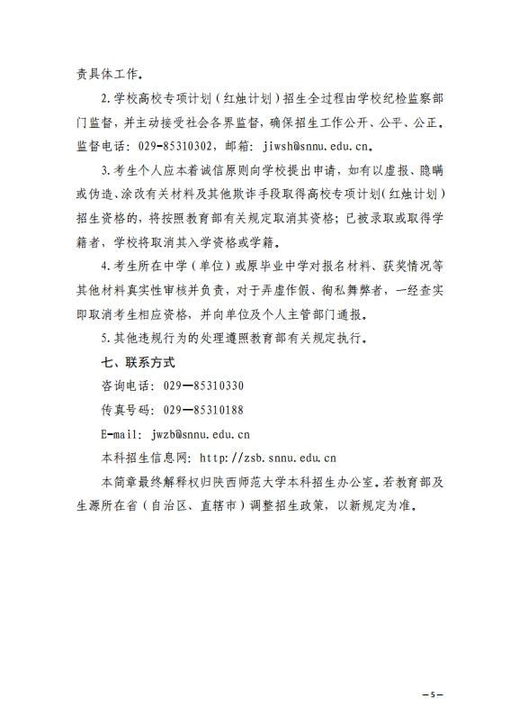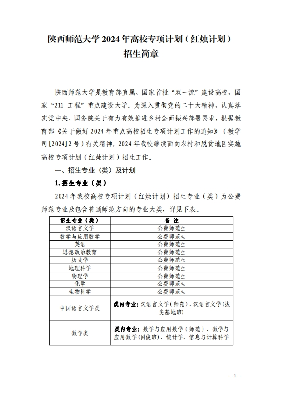 陕西师范大学2024年高校专项计划(红烛计划)招生简章