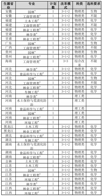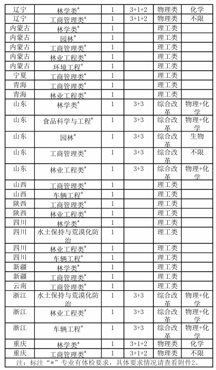 1.北京林业大学2024年高校专项计划分省分专业招生计划