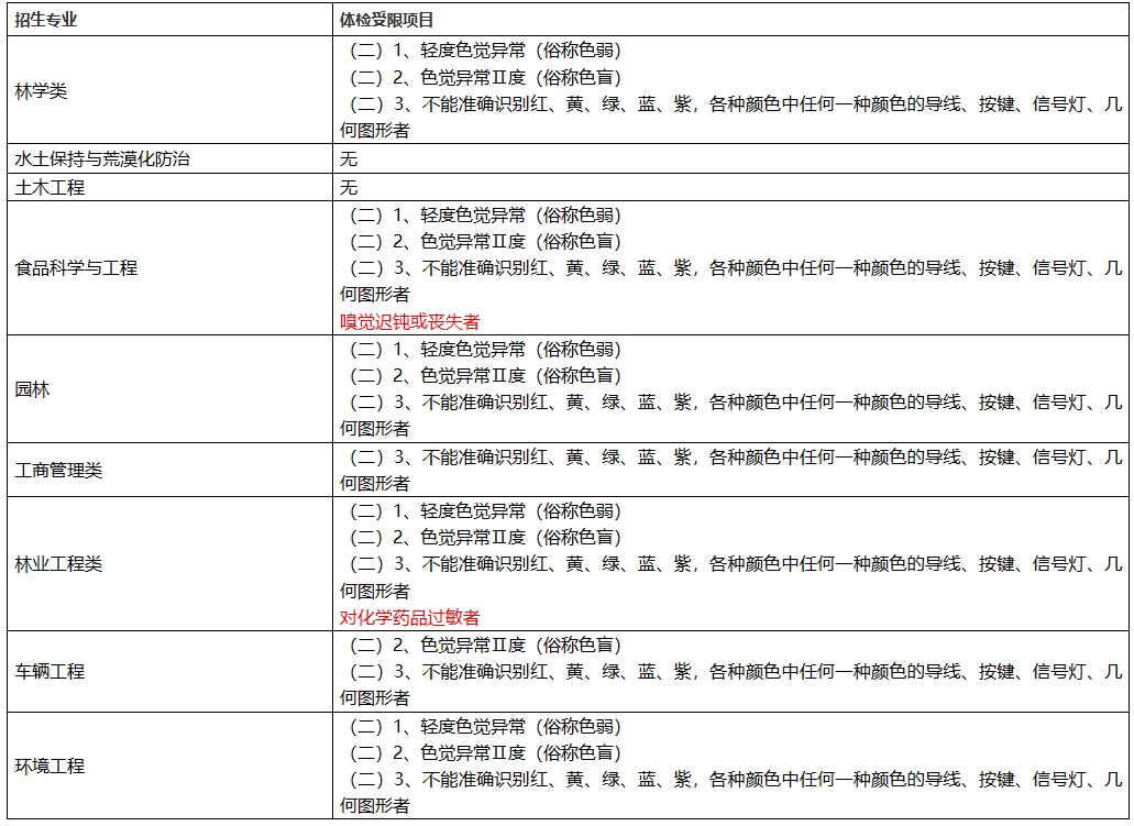 2.北京林业大学2024年高校专项计划招生专业体检要求