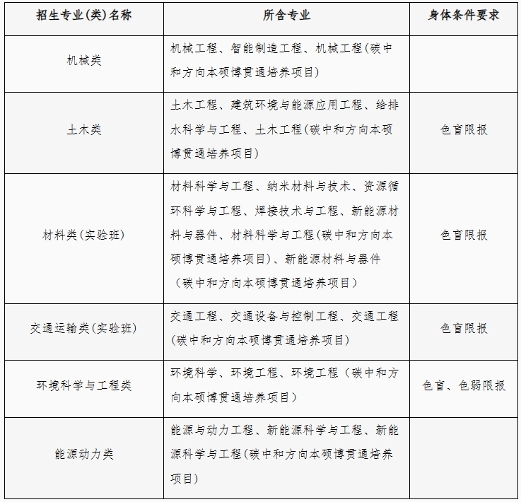 3.对于高考改革省份6个招生专业(类)的选考科目要求为“物理+化学”。