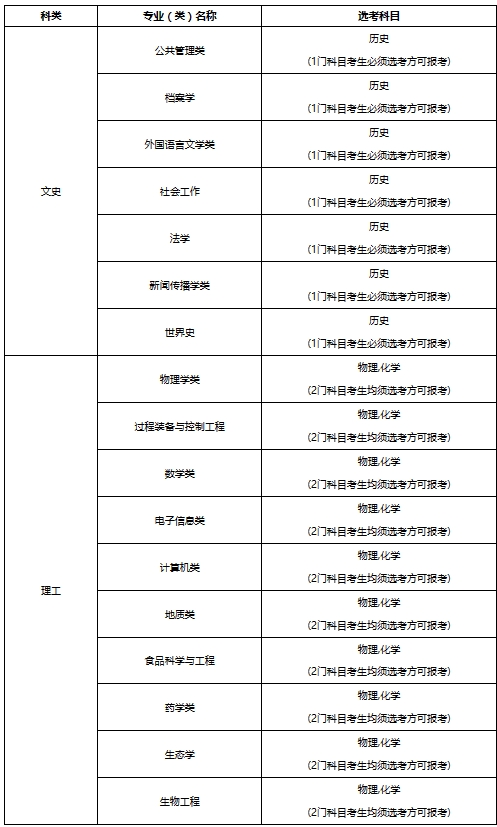 注:1.施行高考综合改革省份考生,选考科目应符合我校对考生所报专业(类)提出的选考科目要求。
