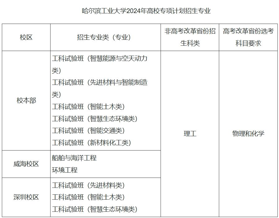 为深入学习贯彻党的二十大精神,认真落实党中央、国务院关于有力有效推进乡村全面振兴部署要求,根据教育部《关于做好2024年重点高校招生专项计划工作的通知》(教学司〔2024〕2号)文件精神,2024年哈尔滨工业大学继续实施卓越优才计划-高校专项计划招生(以下简称高校专项计划),具体办法如下。