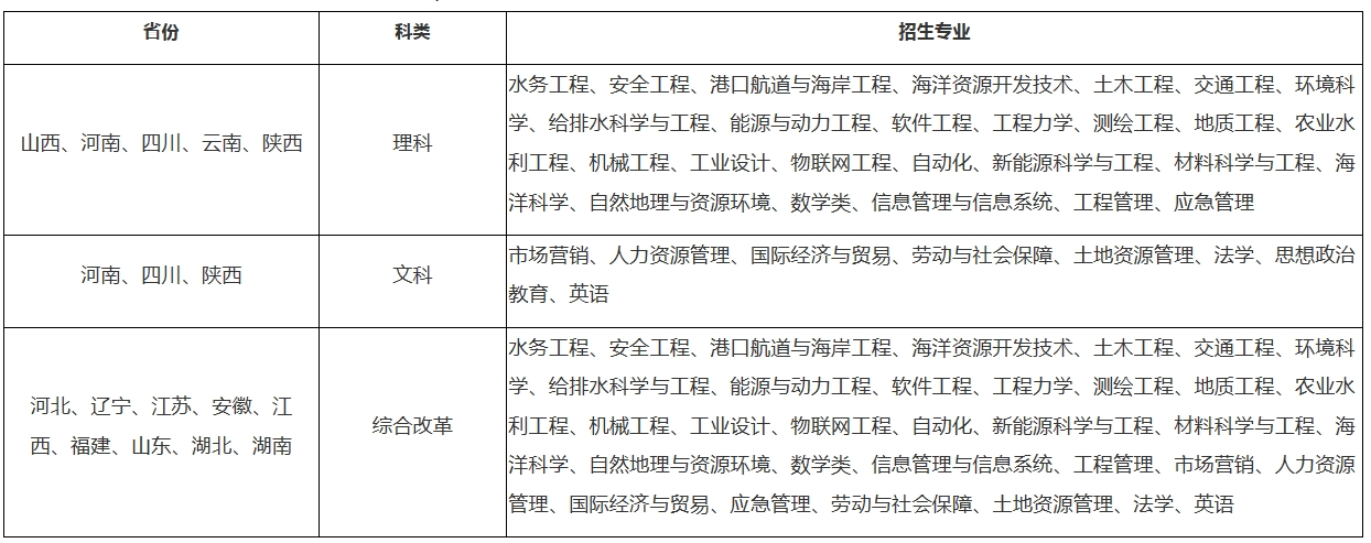 七、若国家或生源所在省份招生政策有所变动,我校将做相应调整。本简章涉及报名与测试安排若有变动,将在河海大学招生信息网发布,请予关注。