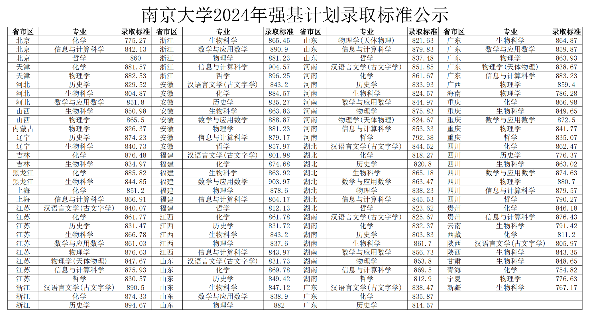 多所高校公布2024年强基计划录取分数线