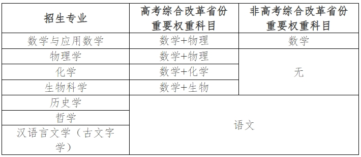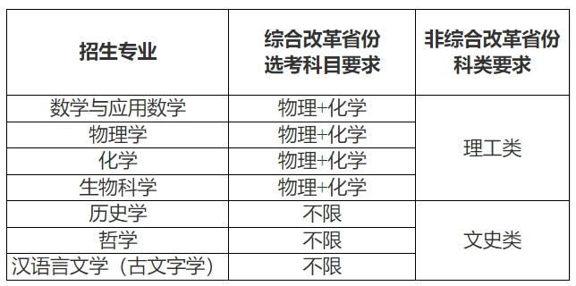 注:所有考生只能填报一个专业志愿。第二类考生只能报考获奖学科对应的招生专业(其中信息学奥林匹克竞赛对应数学与应用数学专业或物理学专业)。