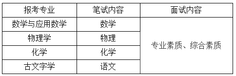 对于第一类考生,在笔试和面试成绩分别达到60分基础上,我校根据考生专业志愿和同省份该专业的招生计划,按综合成绩由高到低顺序确定预录取名单。如综合成绩相同,优先录取高考成绩高者,再相同,数学与应用数学、物理学、化学专业依次为数学、语文、外语成绩高者,古文字学专业依次为语文、数学、外语成绩高者。同等情况下,优先考虑体质测试成绩好的考生。