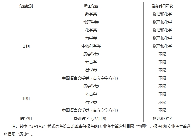 3. 考生仅可选择一个专业组进行报考,各专业组单列计划,单独排队入围及录取。医学组在北京大学医学部招生代码下录取。
