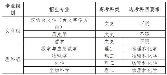 (一)我校基础学科招生改革试点工作在北京师范大学招生工作小组的领导下,由北京师范大学招生办公室负责具体工作的组织和实施。我校在实施本简章的过程中做到招生方案公开、选拔方法公平、录取标准公示。