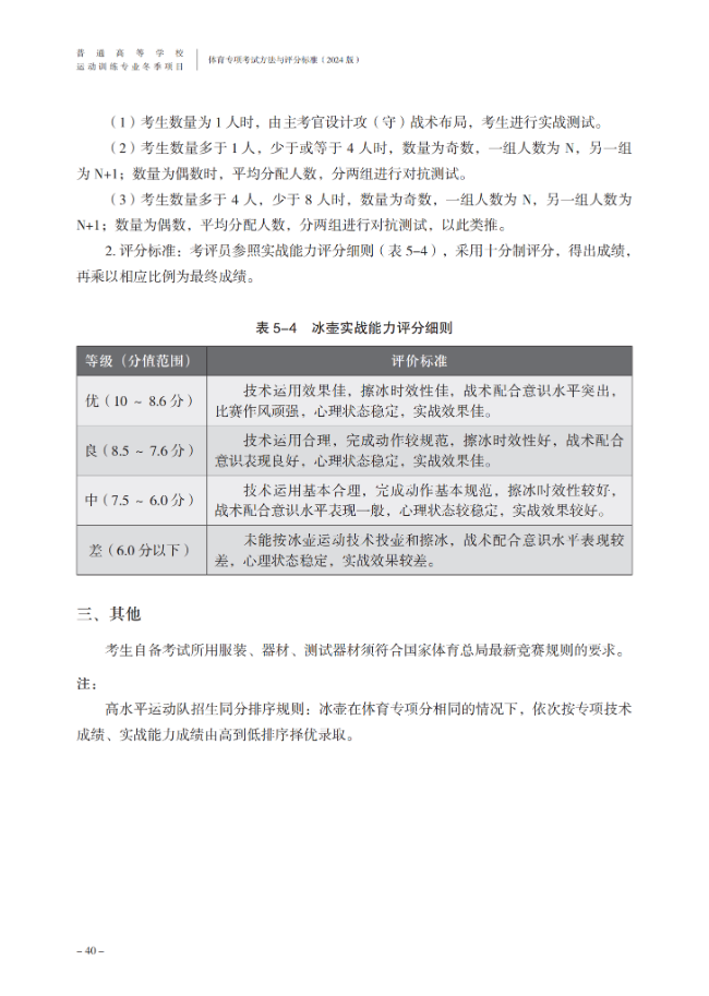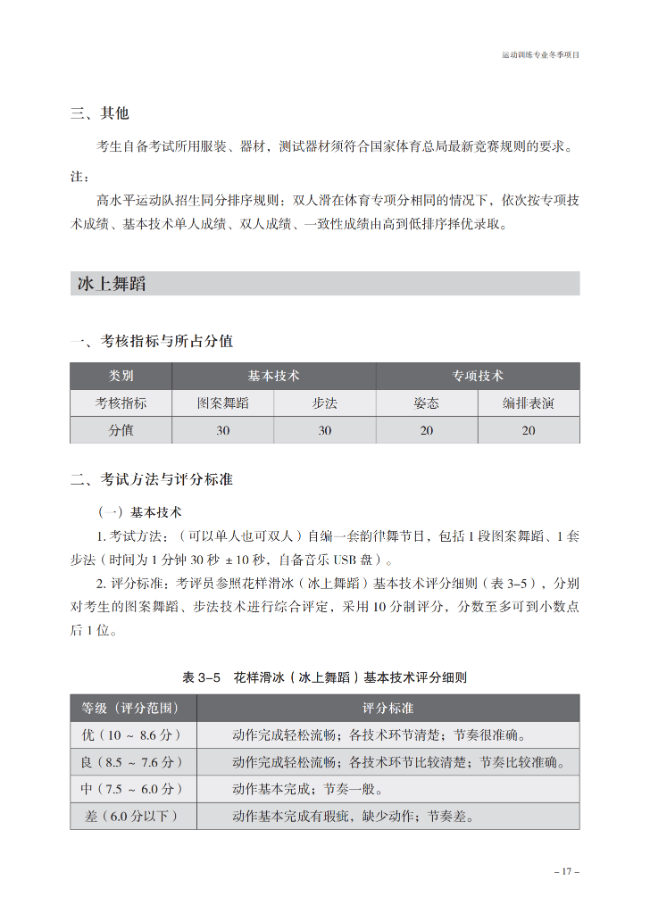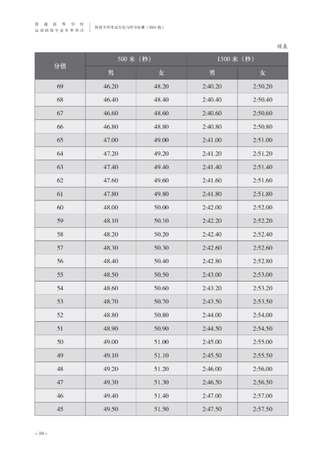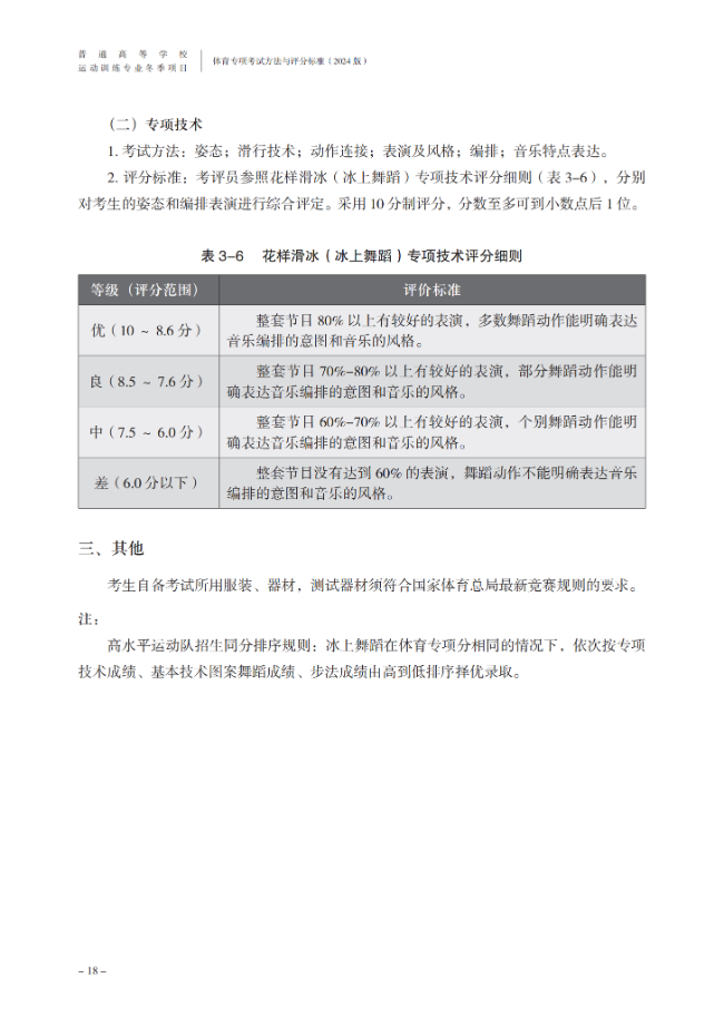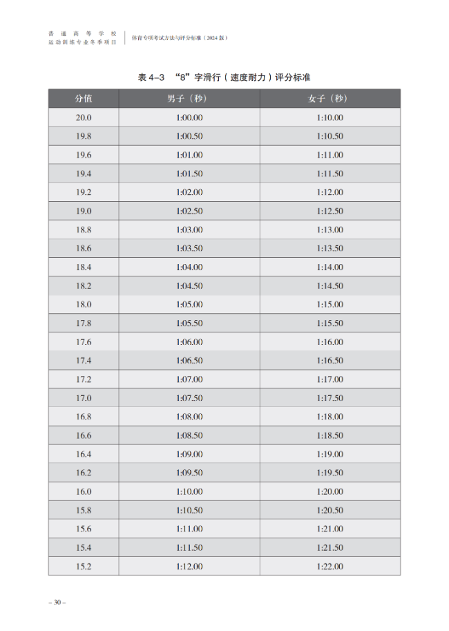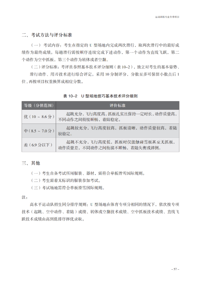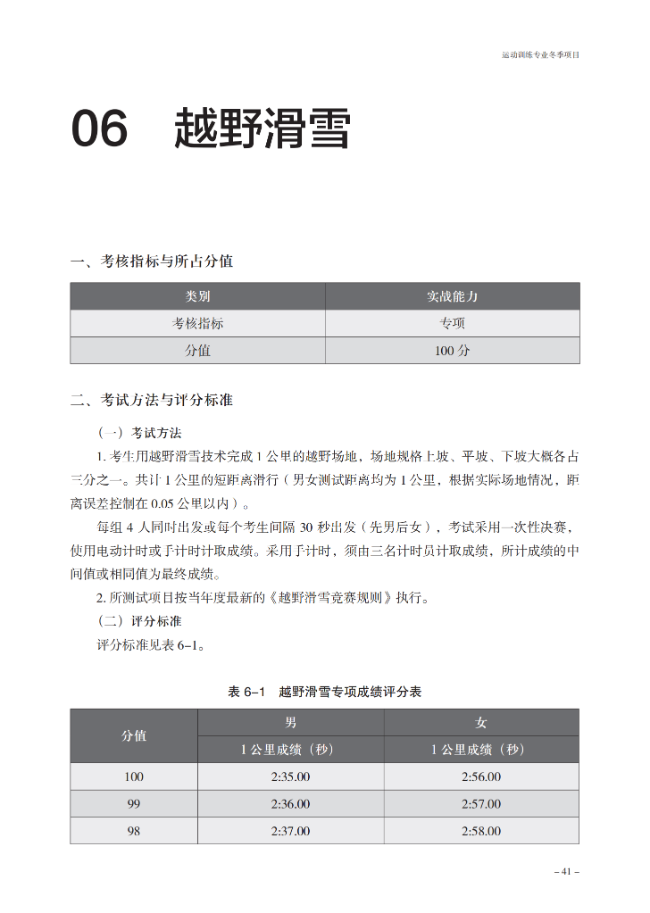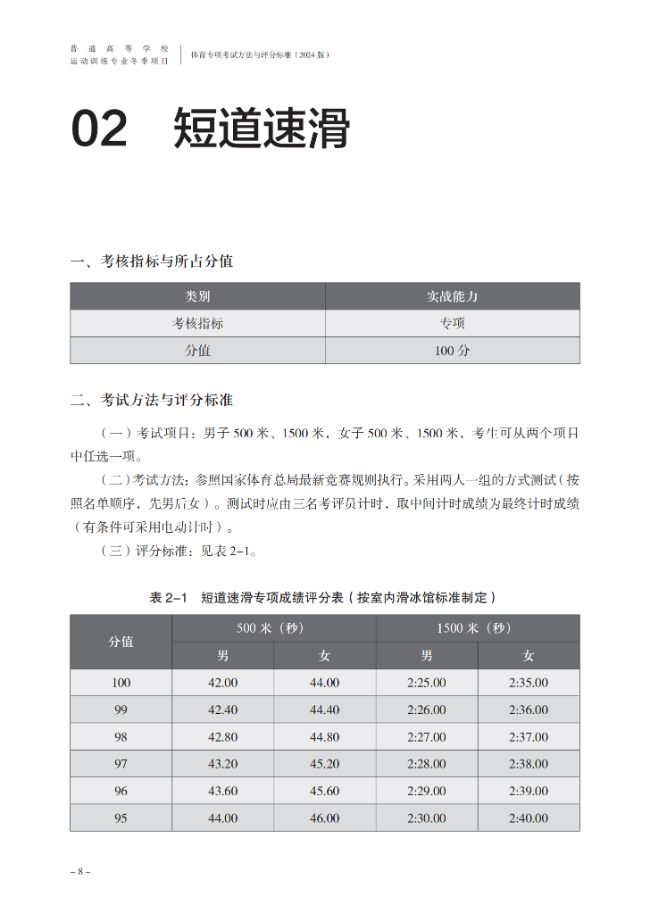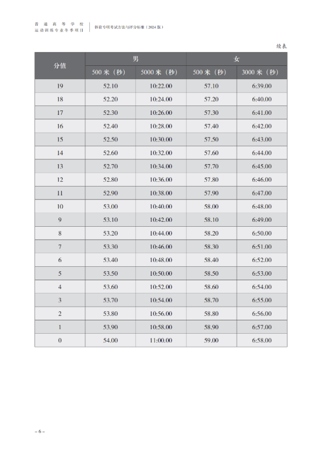 普通高等学校运动训练专业 冬季项目体育专项考试方法与评分标准(2024版)