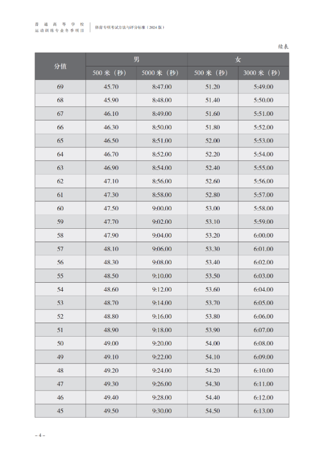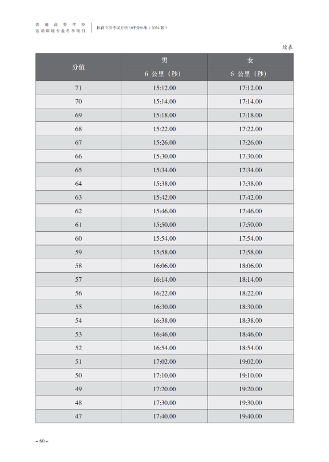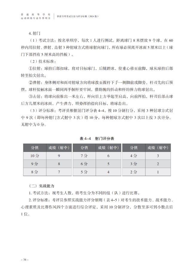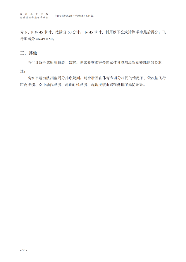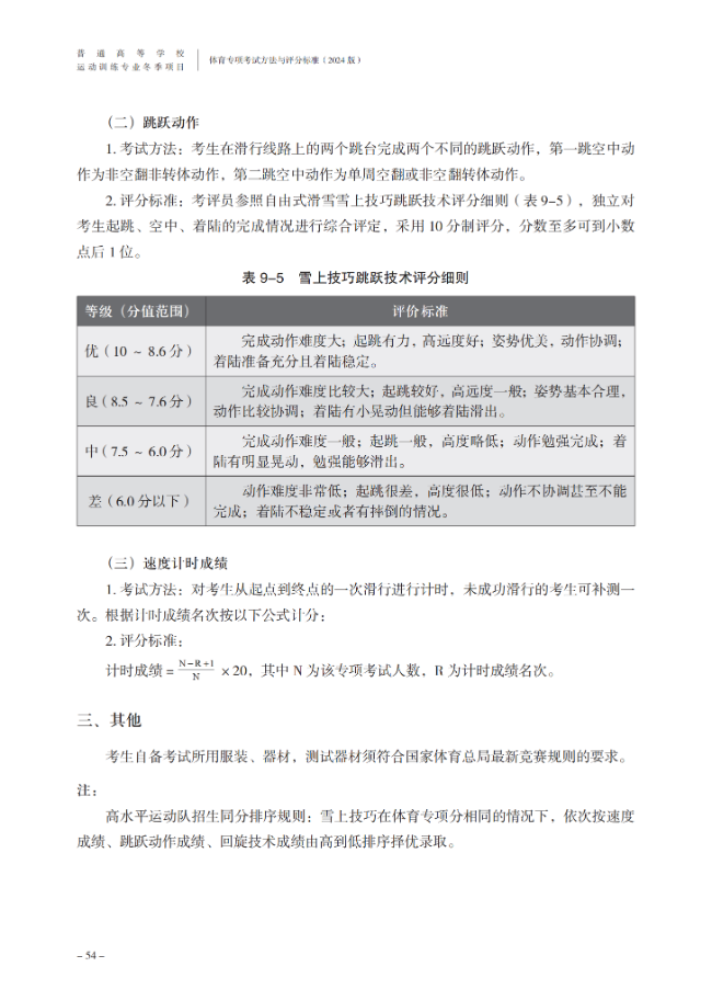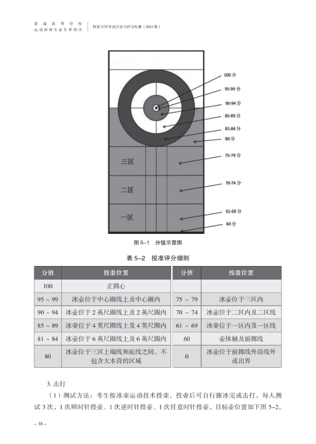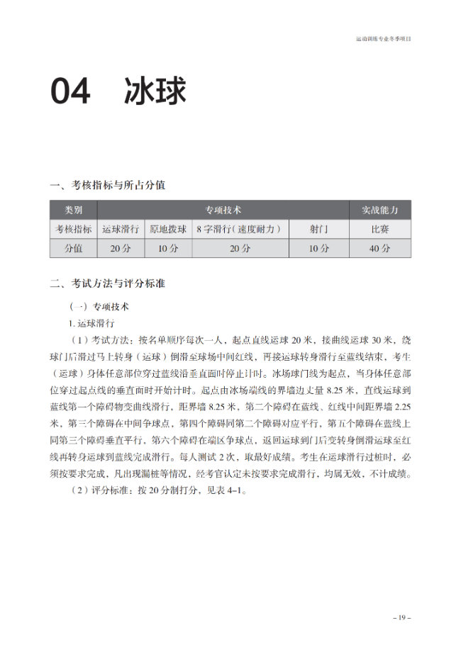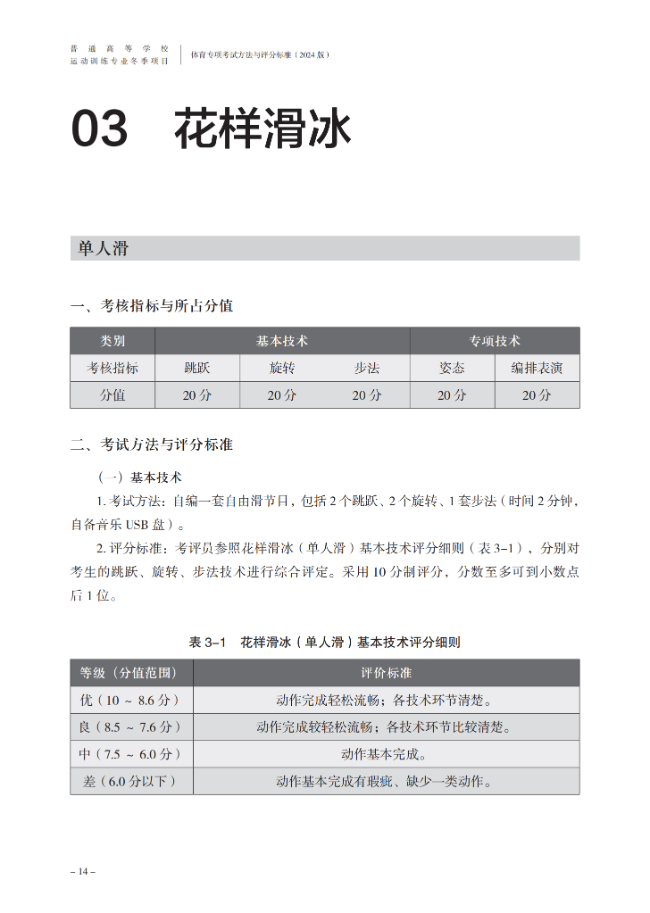 普通高等学校运动训练专业 冬季项目体育专项考试方法与评分标准(2024版)