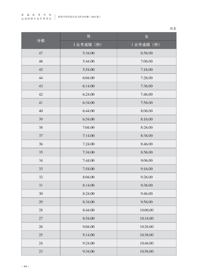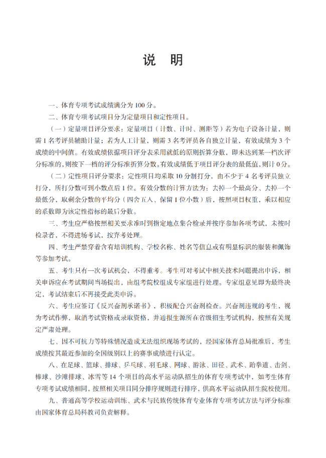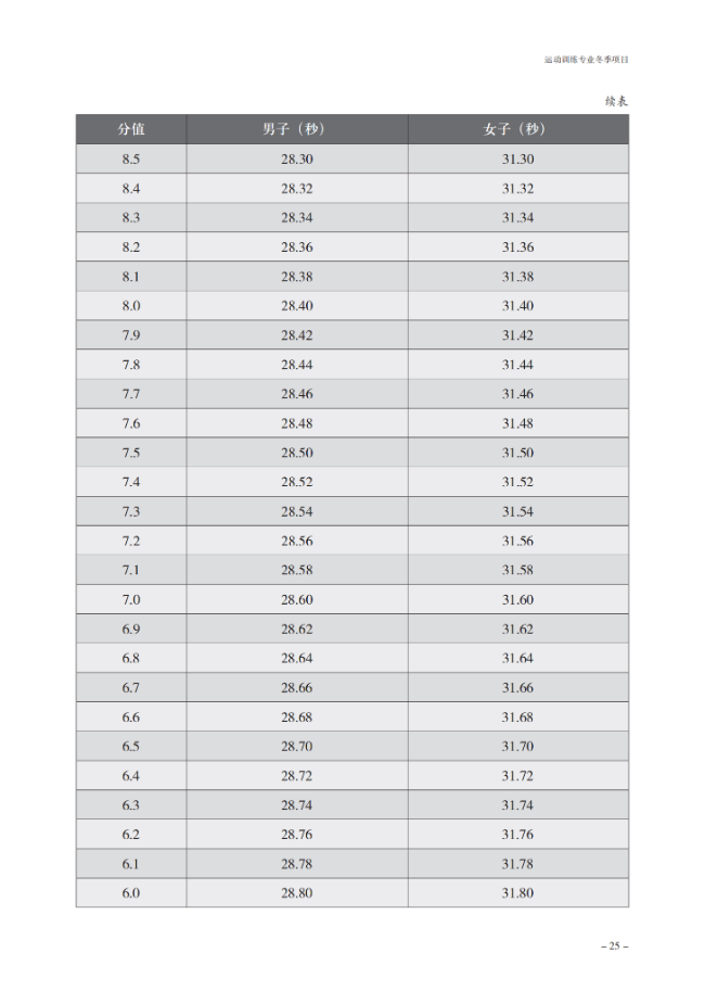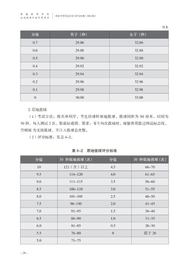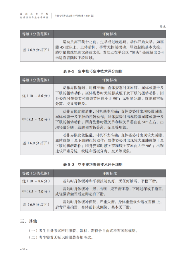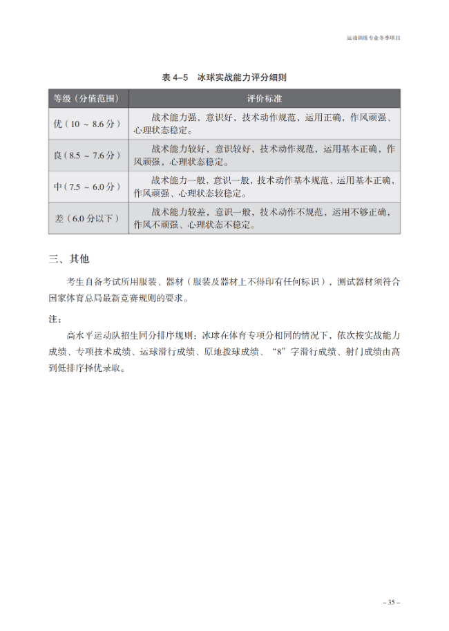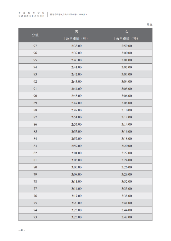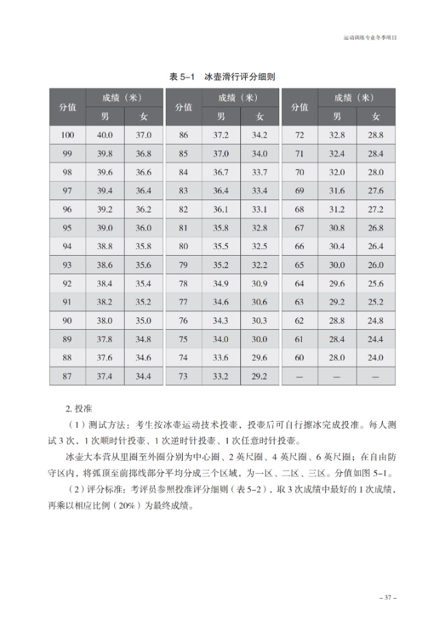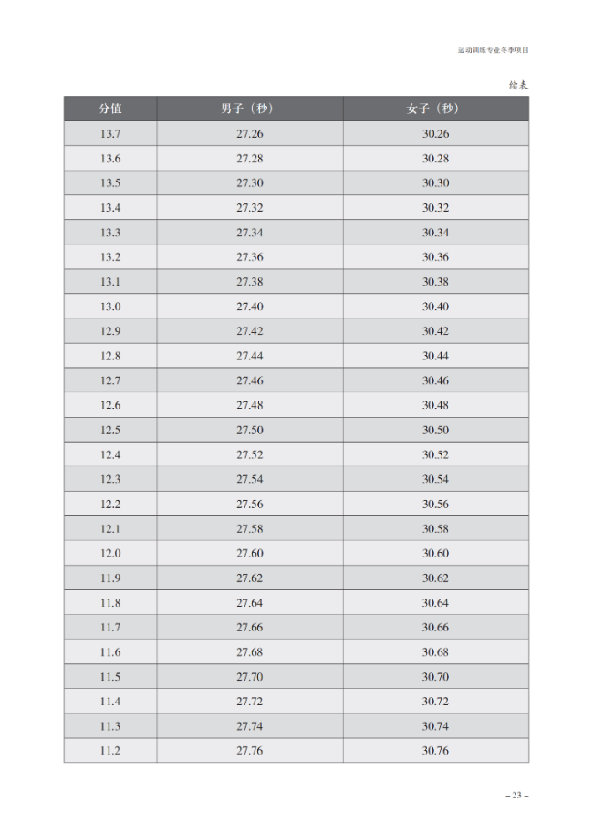 普通高等学校运动训练专业 冬季项目体育专项考试方法与评分标准(2024版)