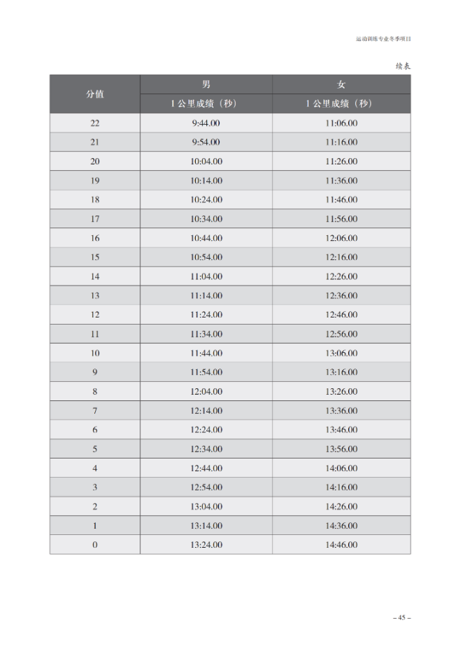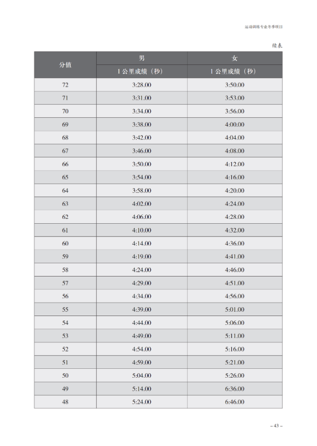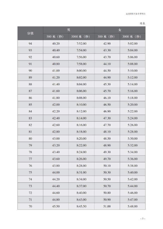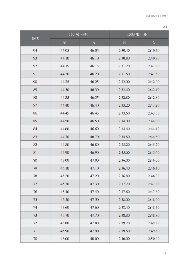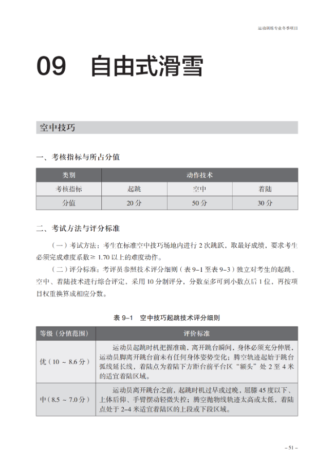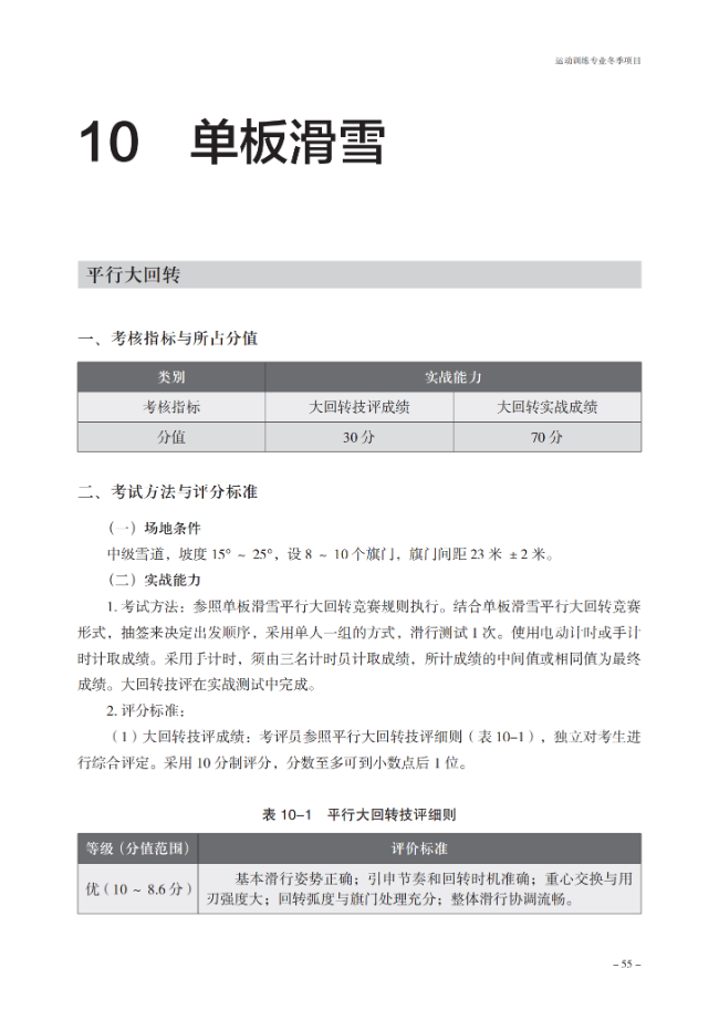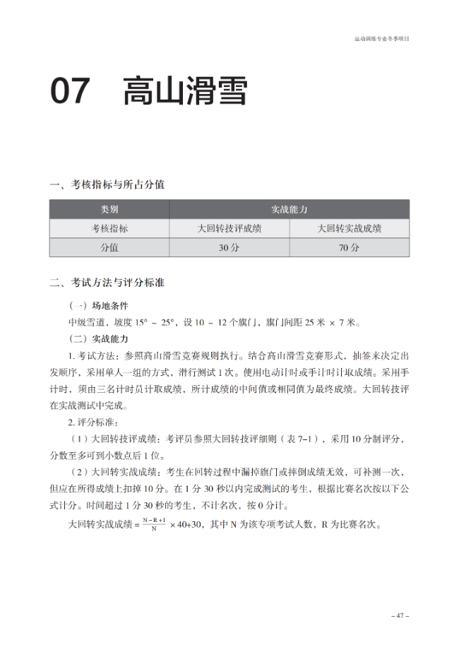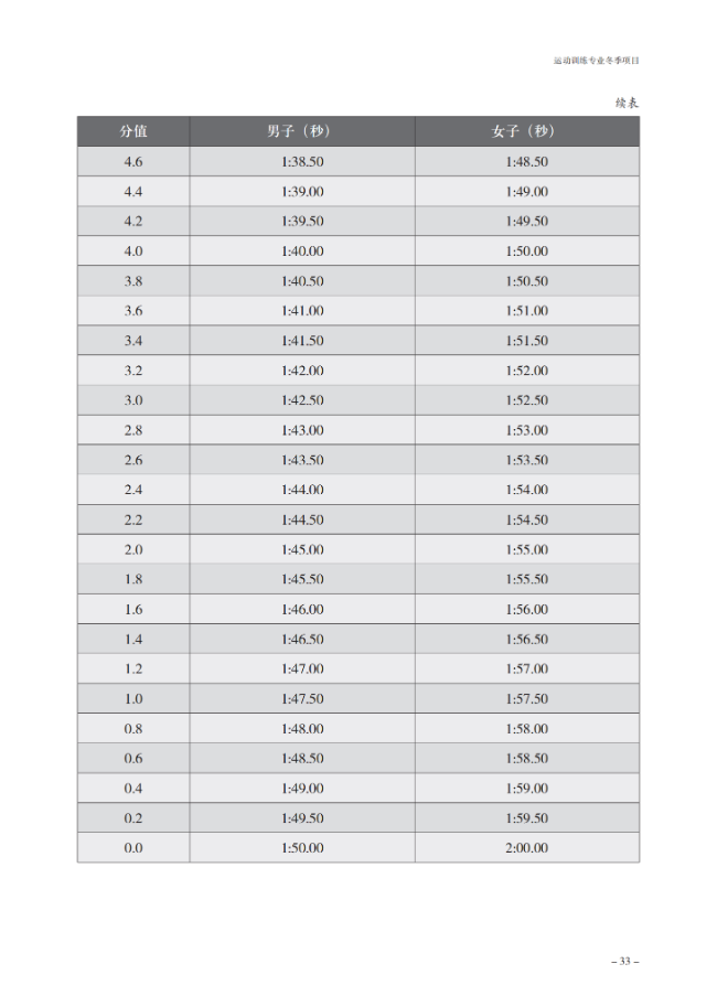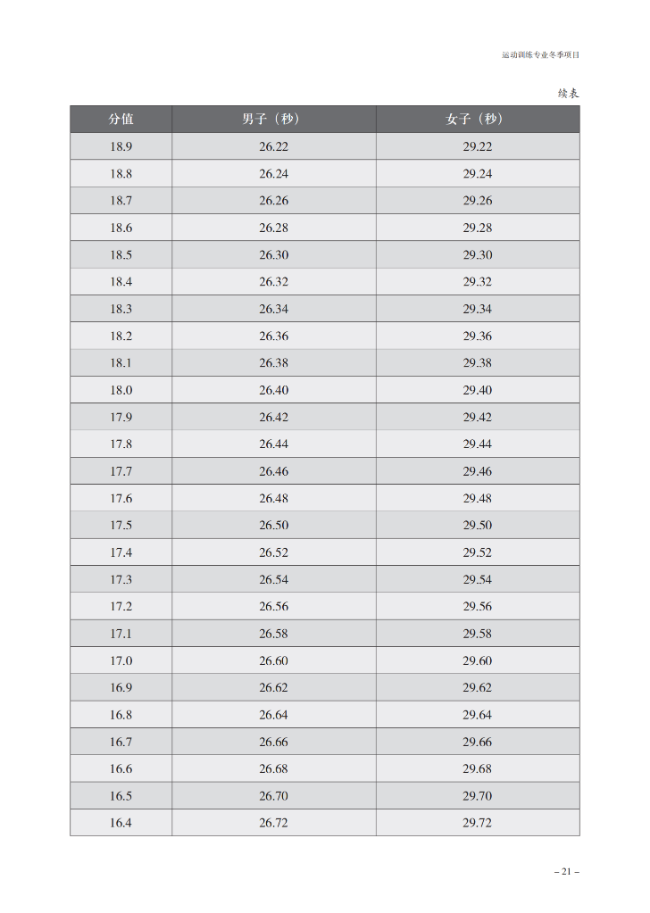 普通高等学校运动训练专业 冬季项目体育专项考试方法与评分标准(2024版)