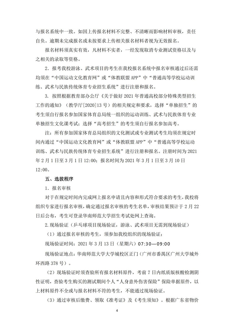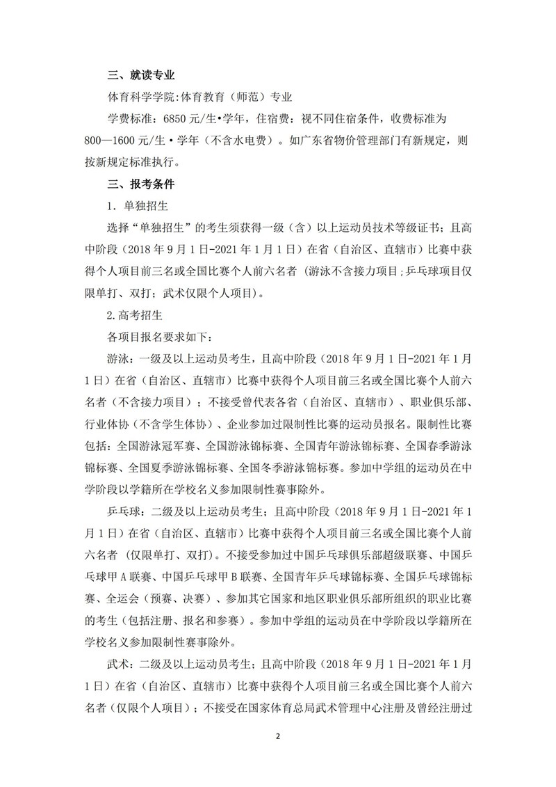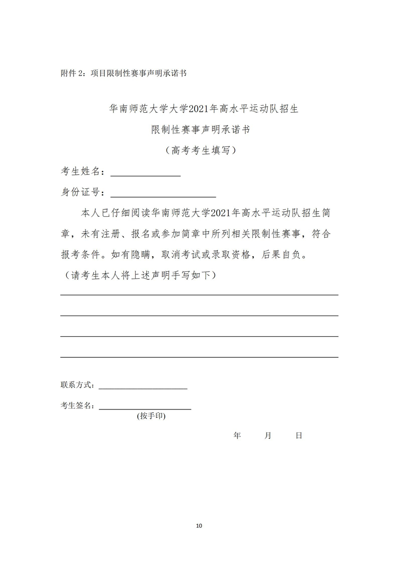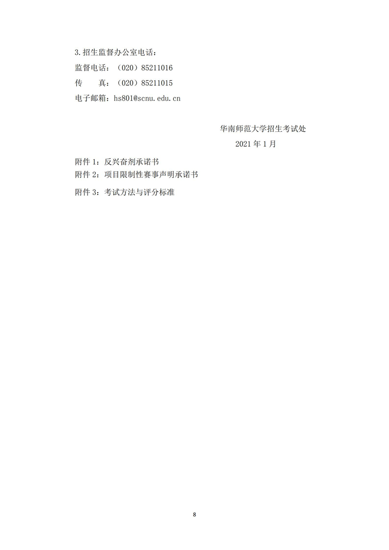 华南师范大学2021年高水平运动队招生简章