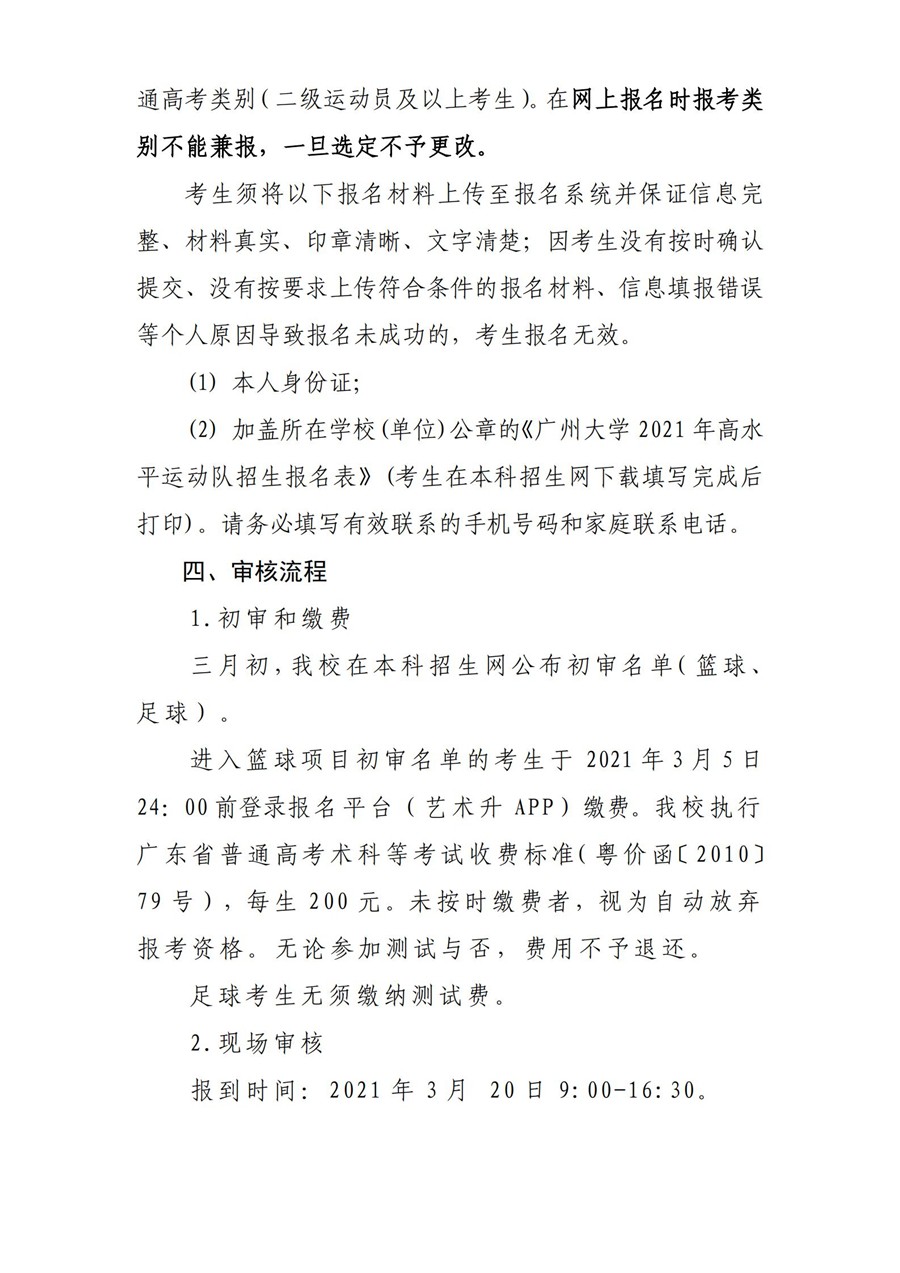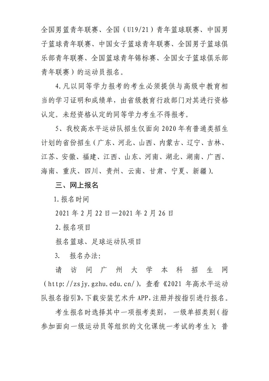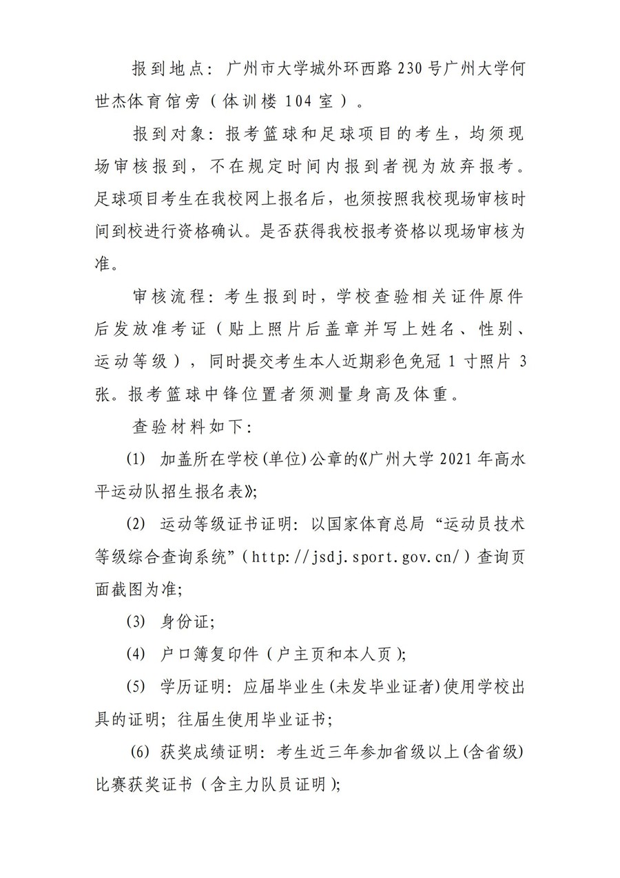 广州大学2021年高水平运动队招生简章