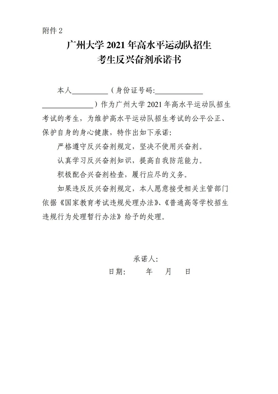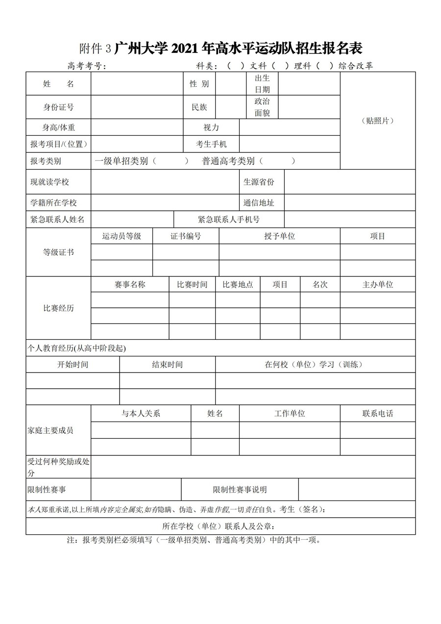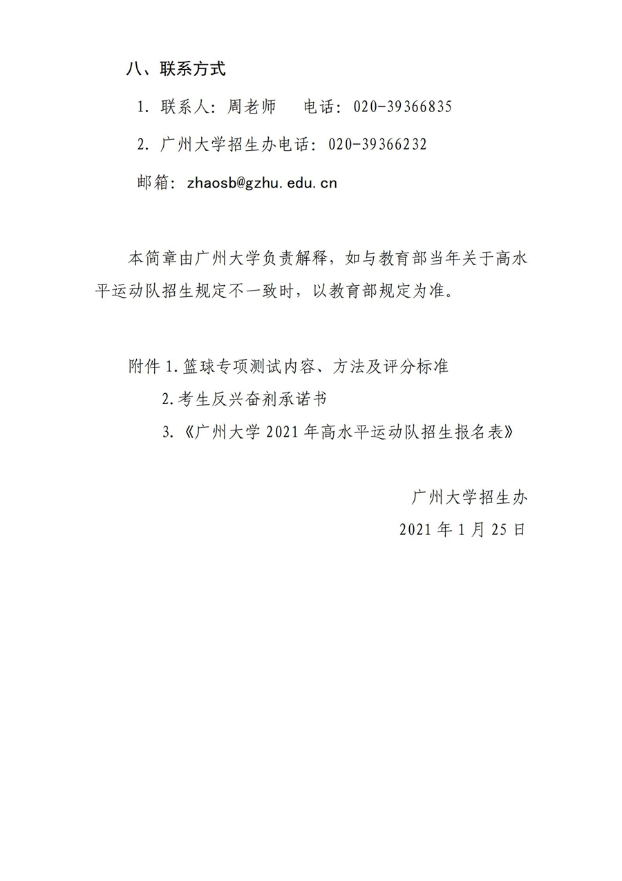 广州大学2021年高水平运动队招生简章