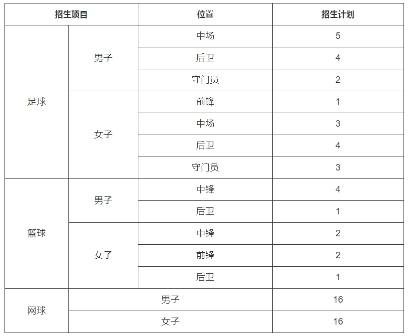 ②我校篮球项目仅限5人制比赛、网球项目仅限单打比赛获得的运动员技术等级证书有效,其他赛制获得的运动员技术等级证书无效。
