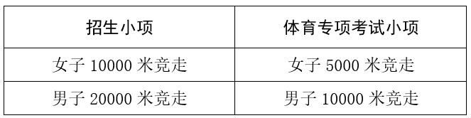 (三)女子10000米竞走、男子20000米竞走招生小项与考试小项对应关系如下表,其余报考小项与体育专项考试小项一致。