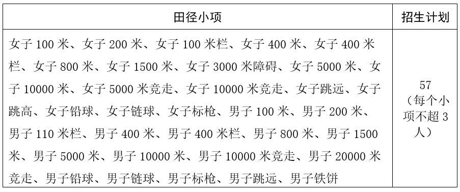 (二)田径项目:57人。