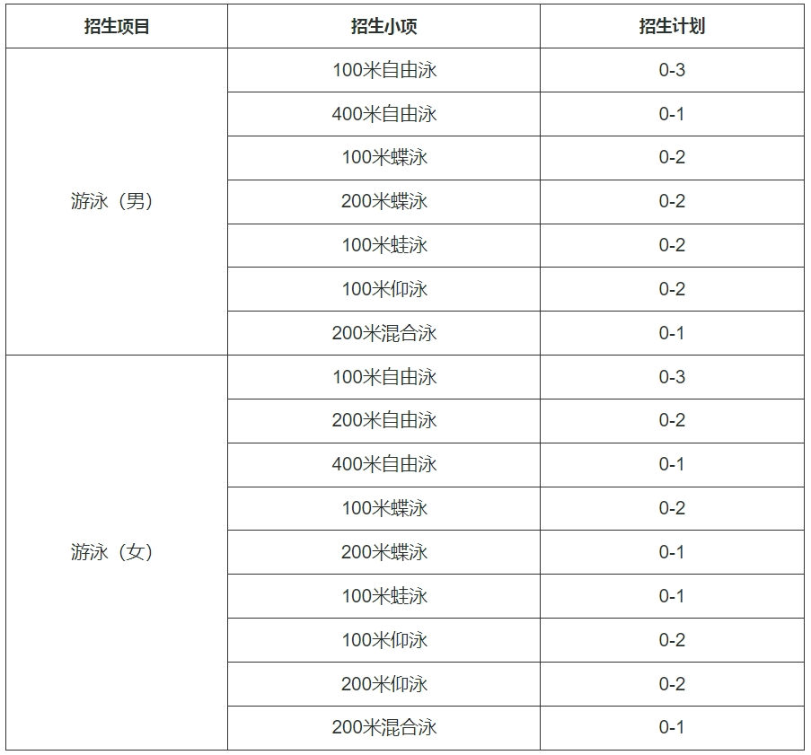 招生计划:2024年我校高水平运动队招生计划数控制在2023年度普通本科招生计划总数的1%以内。具体招生计划如下: