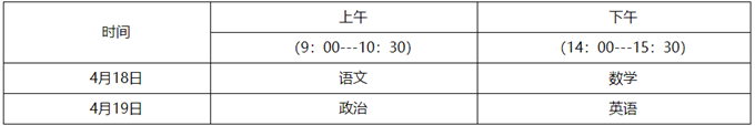 文化考试在考生生源省份进行,由生源所在省份省级招生考试机构组织实施。考生可于2020年4月10日12:00后登录“中国运动文化教育网”或“体教联盟APP”体育单招考试管理系统打印文化考试准考证,依据准考证上的考点安排于2020年4月18日至19日参加文化考试。2020年5月14日12:00后可登录系统查询文化考试成绩。文化考试时间安排如下:
