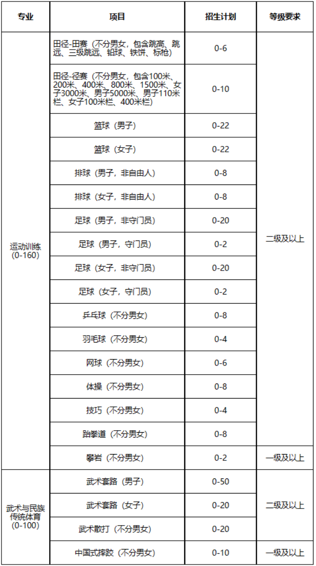 注:以上计划为预定计划(含优秀运动员免试入学招生计划),正式计划以教育部、国家体育总局下达为准。