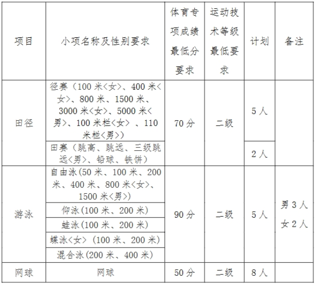 (5)田径项目体育专项成绩不低于70分。