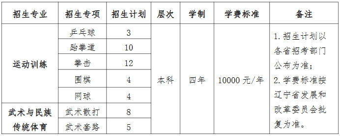 注:我校运动训练专业仅招收部分夏季项目的专项考生。