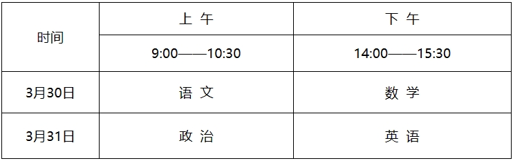 2.考试科目:语文、数学、政治、英语,考试分值:每科150分,总分600分,使用国家通用语言文字作答。