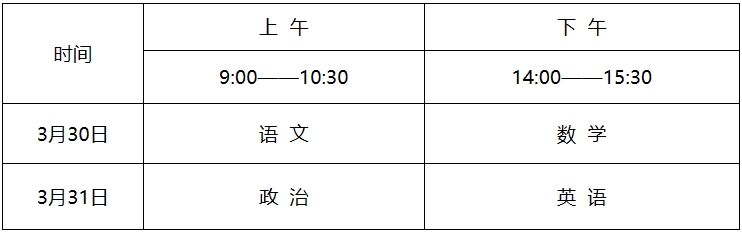 考生自己报名参加各省级招生考试机构组织实施的运动训练、武术与民族传统体育专业文化考试。文化考试科目为语文、数学、政治、英语四科,每科满分为 150 分,四科满分为 600 分,使用国家通用语言文字作答。