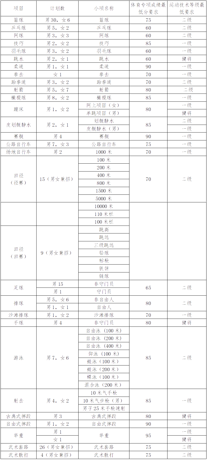 (一)我校依据招生项目计划、运动员技术等级要求和运动队建设需求,分项目划定体育专项考试成绩最低录取控制线。