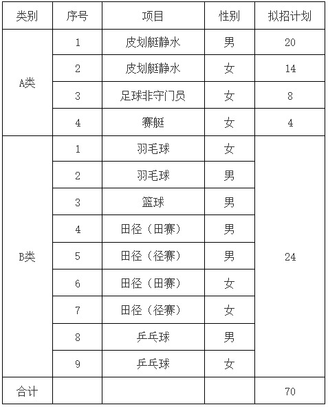 2. B类各项目分男女一志愿招生计划(以下简称项目计划)上限为8人。