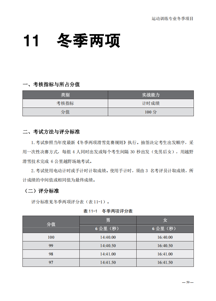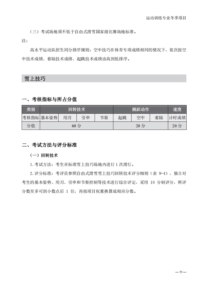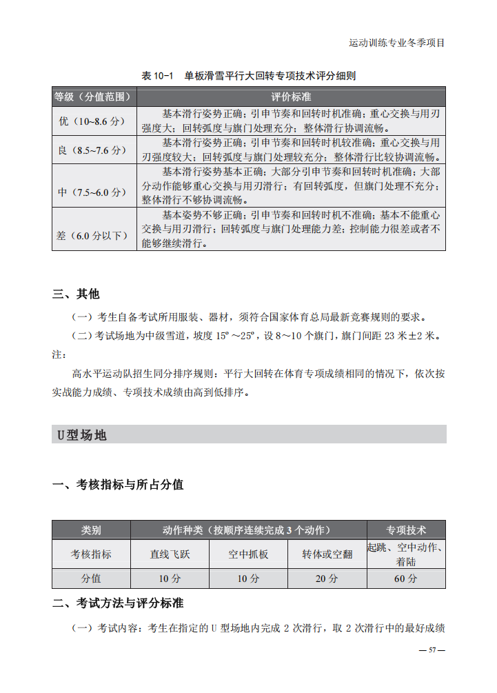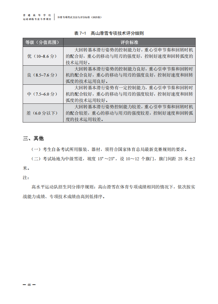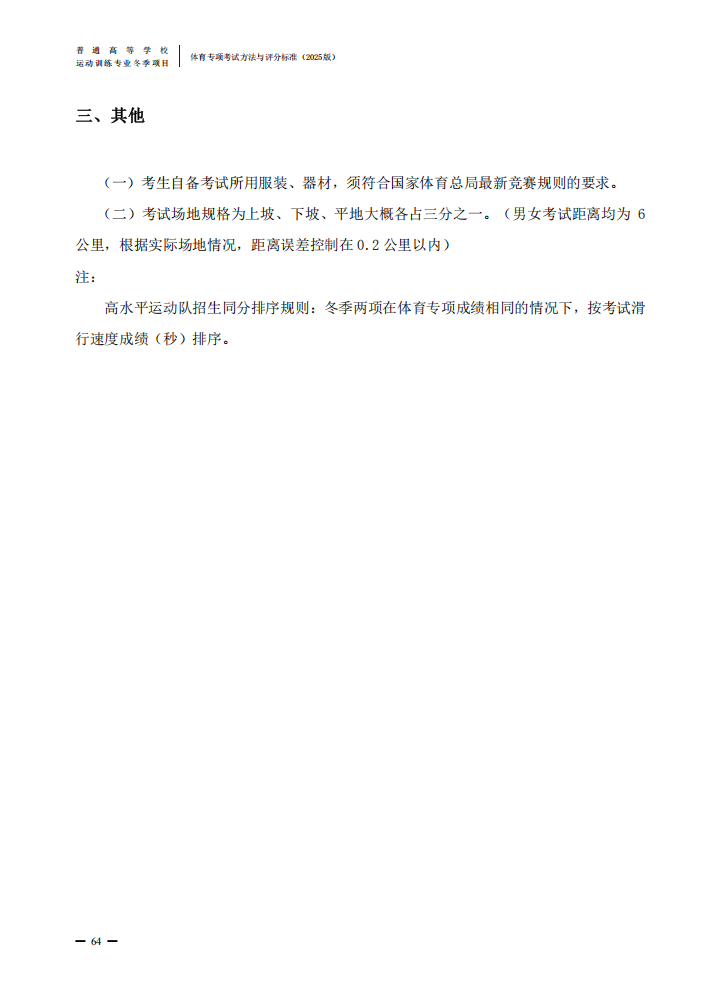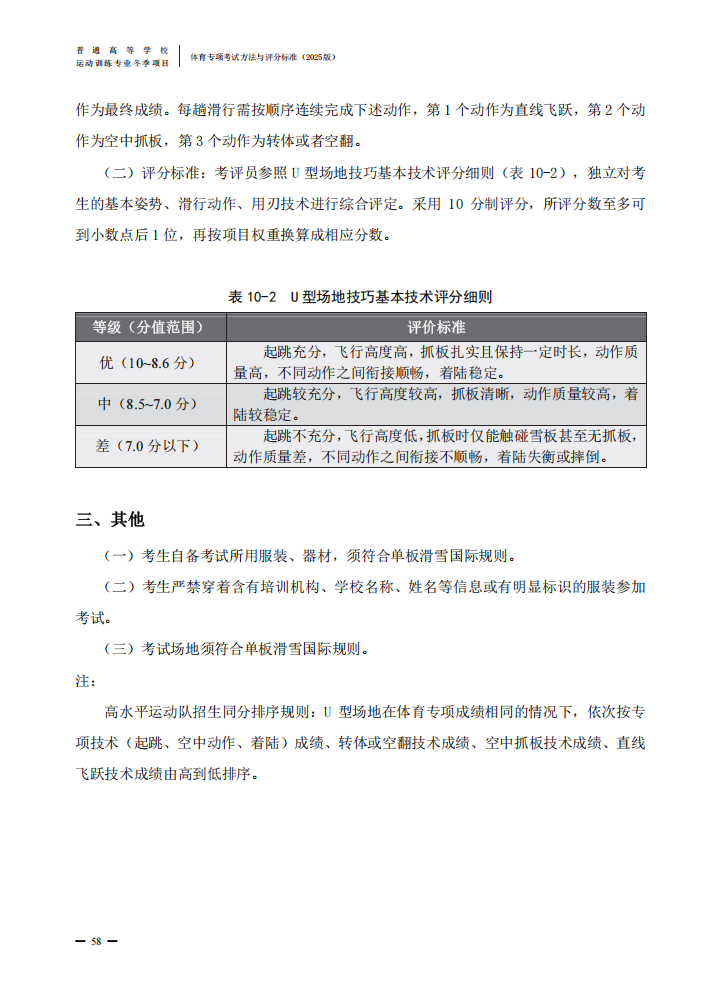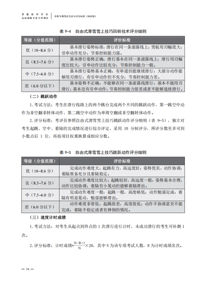 普通高等学校运动训练专业冬季项目体育专项考试方法与评分标准(2025版)