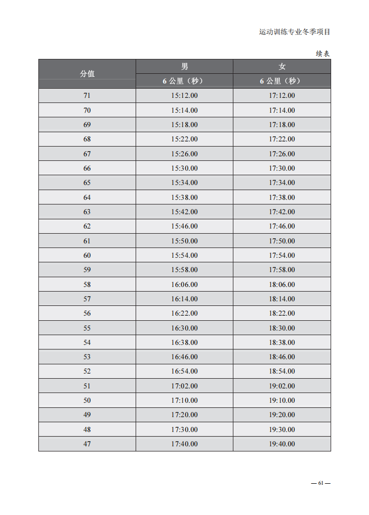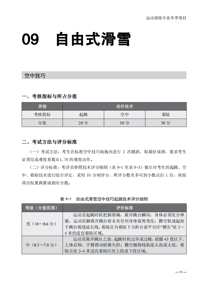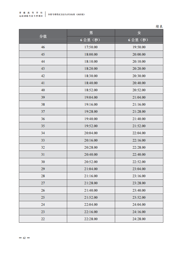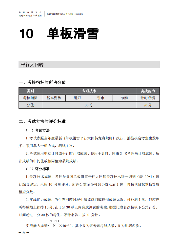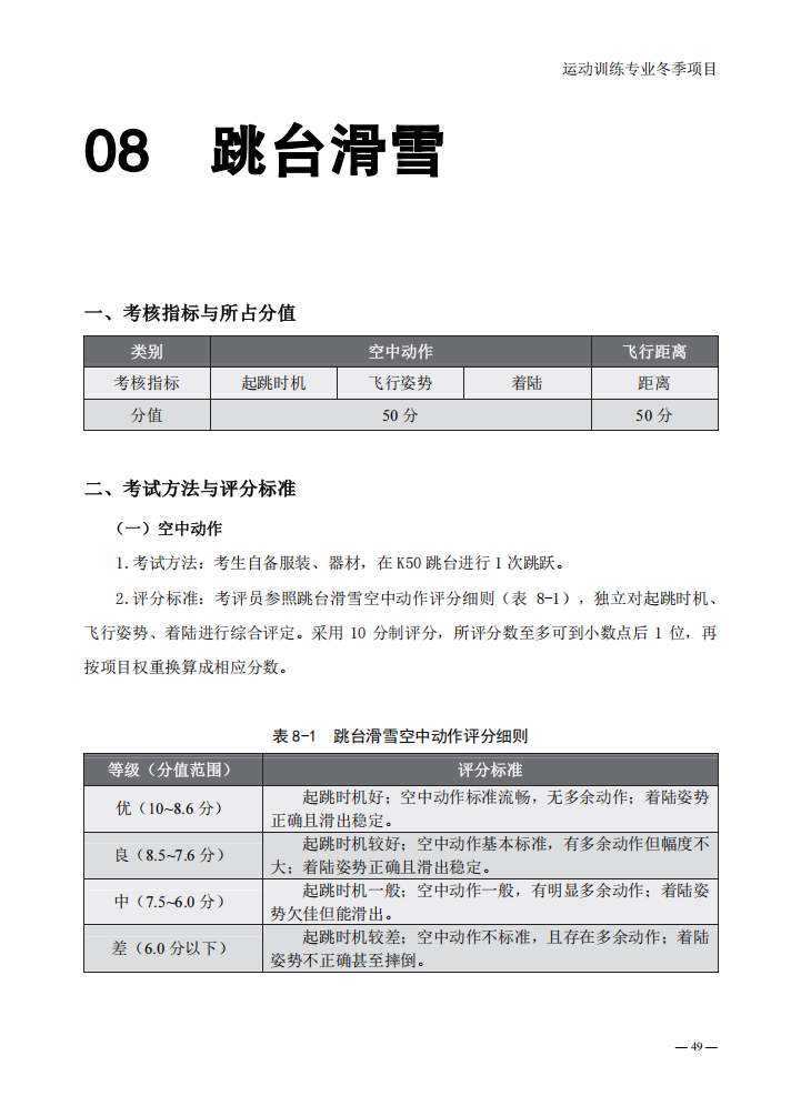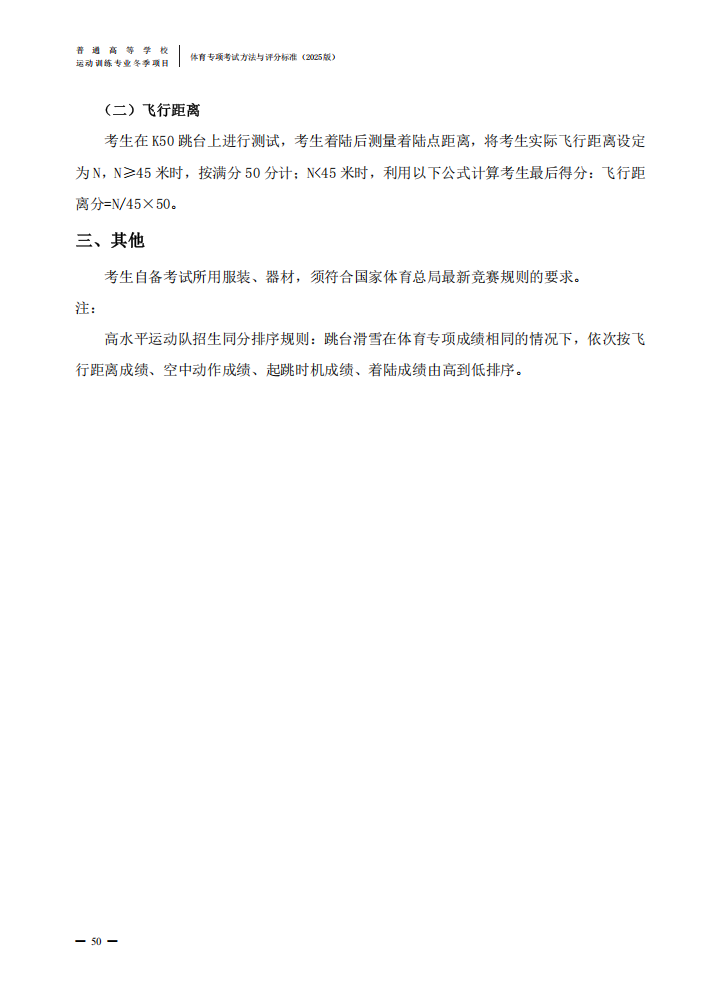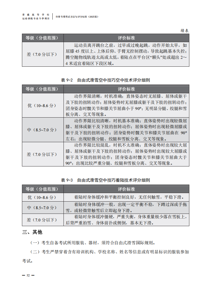 普通高等学校运动训练专业冬季项目体育专项考试方法与评分标准(2025版)