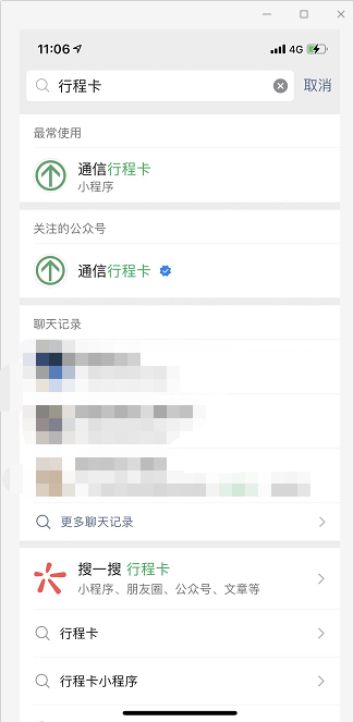 附件4:行程卡:微信搜索行程卡,点击通信行程卡即可。