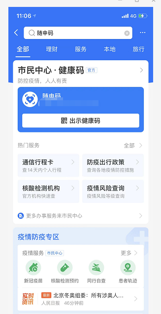 附件3:随申码:支付宝搜索“随申码”,点击出示健康码即可。