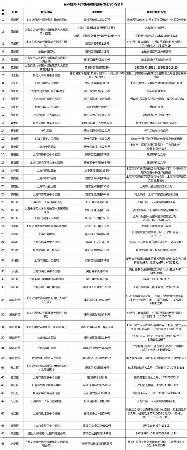 附件2:上海市提供24小时核酸检测服务的医疗结构名单