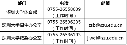 2.须在2020年2月15日前自行联系深圳大学体育部(联系人:谭老师,联系电话:13902950439),并于2020年2月1日—15日登录“中国运动文化教育网”(www.ydyeducation.com/)或“体教联盟”APP中的“运动员保送系统”进行报名,并根据系统要求提交以下相关材料,逾期不予受理: